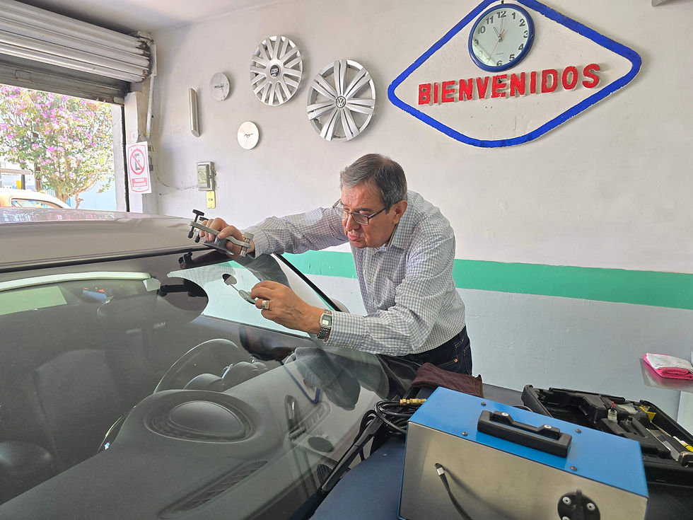 Miguel, jubilado de la armadora automotriz en Puebla, decidió dedicar su experiencia y conocimientos técnicos a un servicio poco común en aquel entonces: reparar en lugar de reemplazar. Con equipo especializado, logró devolverle la vida a cristales dañados, ahorrando dinero a cientos de conductores.
